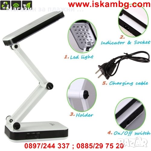 Удобна настолна лампа, която лесно може да сгънете до компактни размери и