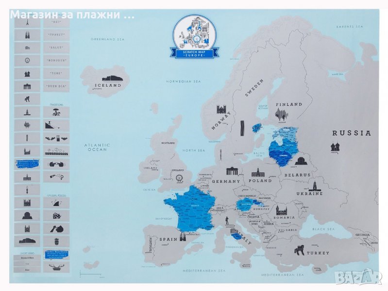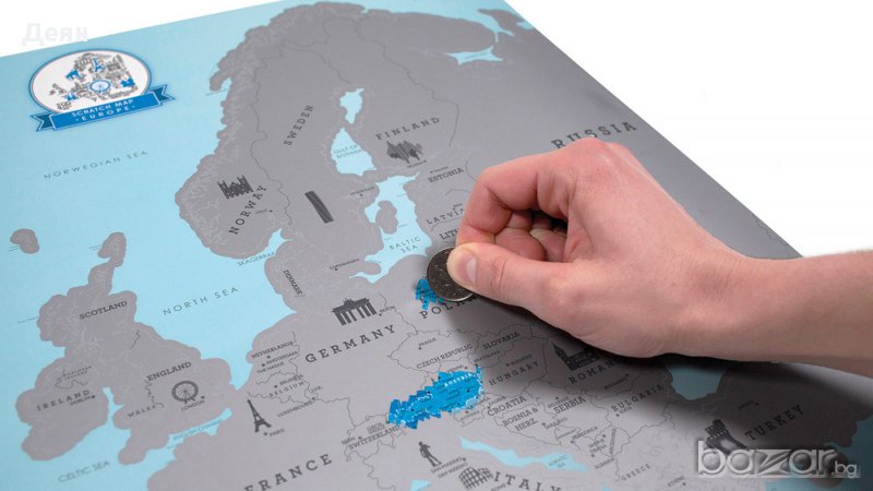 Европа е голяма, красива и местата, които всеки трябва да посети са наистина безкрайни! Ако имате неукротим, приключенски дух и обичате да пътувате и да си спомняте за всяко Ваше пътешествие, то тогава скреч карта Европа е точно за Вас. Благодарение на картата
