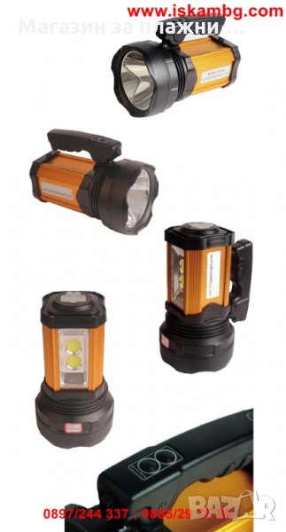 LED прожектор, акумулаторен, с вградена къмпинг лампа