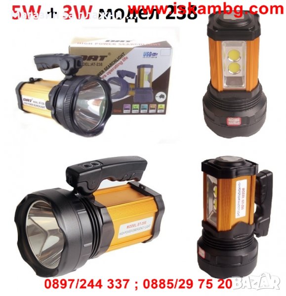 - три режима на работа - 50%, 100%, мигащ (SOS).