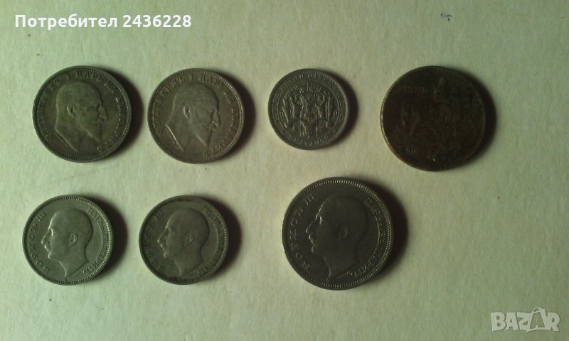 Български царски монети 1910,1925,1930,1940 г, сребърни с лика на Цар Фердинанд I, Фердинандъ I