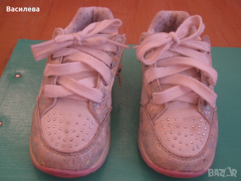 Сребристи бели детски маратонки 26 номер. Носени много малко - бързо умаляха. Запазени. С цип и връзки.