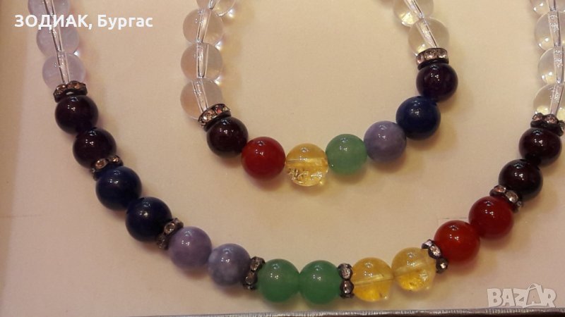 Камъните според чакрите са - Гранат, Карнеол, Цитрин, Авантюрин, Аквамарин, Лазурит, Аметист.