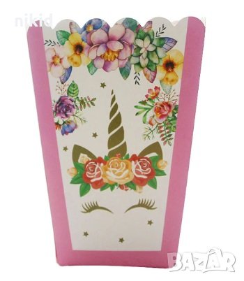 Unicorn Еднорог бял с цветя Парти кутия за дребни лакомства пуканки и др