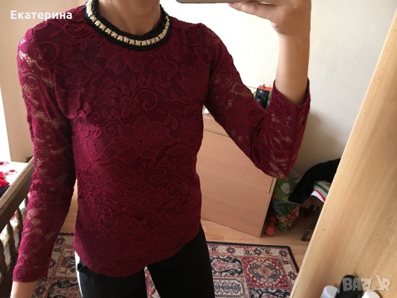 Блузата е носена веднъж, Изключително красива дантела, цвят бордо.