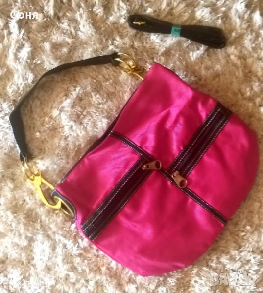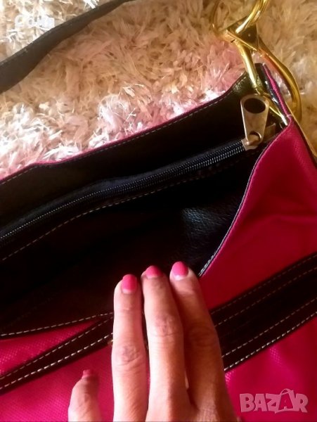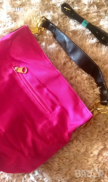 Нова страхотна чанта.Цвят циклама и черна кожа.Страхотна е за спортно елегантно облекло.Има отделно дълга дръжка.За два закупени артикула поемам доставката