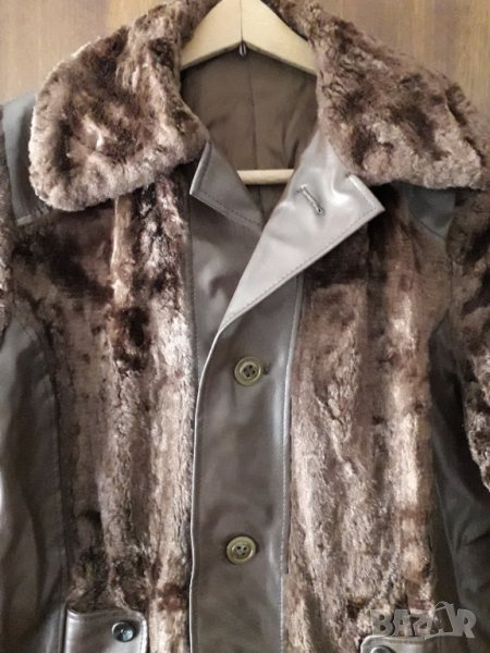 Дамско палто кожух кафяво, с комбинация от гладка и пухкава кожа, странични джобове, отзад с платка колан. Размер Л-ХЛ, рамене 44 см, бюст отпред 60 см/ или обиколка 120 см/, талия 52-54 см/обиколка 104-108 см/, ханш 60 см /обиколка 120 см/, дължина на кожуха 82 см, ръкав 60 см. Отговарям на съобщения тук или тел. 0887780808, изпращам с куриер с отстъпка, преглед, тест или лично предаване в София.