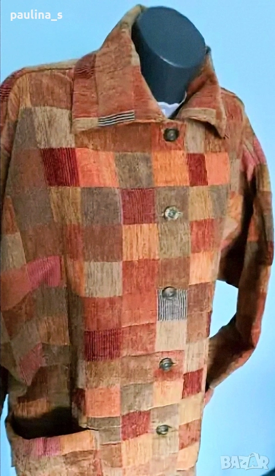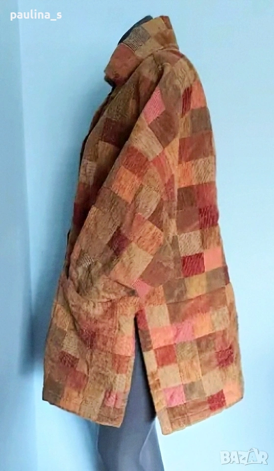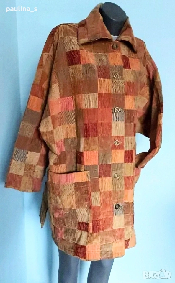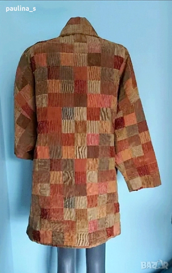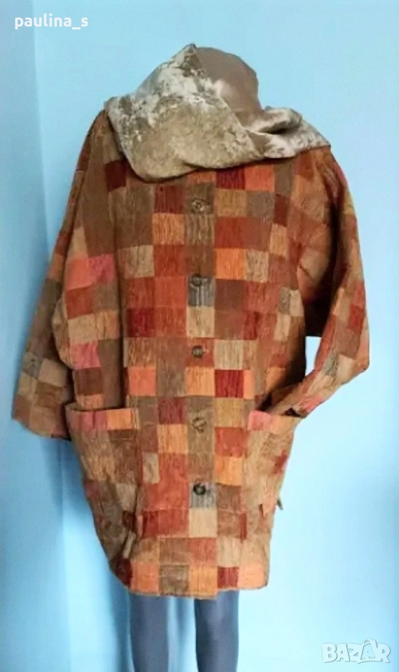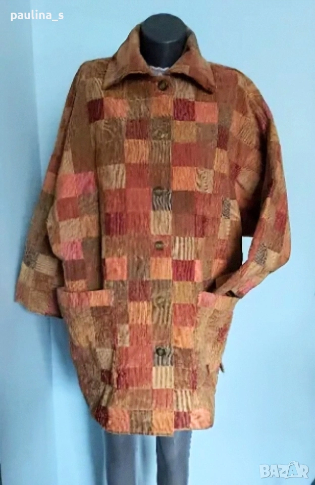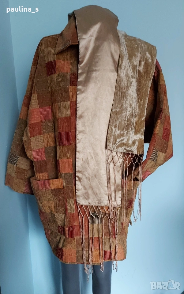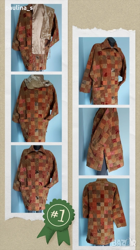 2️⃣. L / 2XL - Много атрактивно преходно палто в каре, като ново, без дефекти и етикет, една бройка. Цената е крайна, без пазарлъци 15 евро евро. Моделът е обран, с външни джобове, щедра яка, падащи рамене. На живо е много красива и ефектна дреха. Шалът е ръчна изработка от сатен и плюш с ресни, размери 180см / 17см - цена 6 евро. Предпочитам артикулите да не се делят! Общата цена е сумарна.