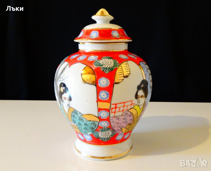 Старинна урна,ваза,буркан японски костен порцелан,ръчно