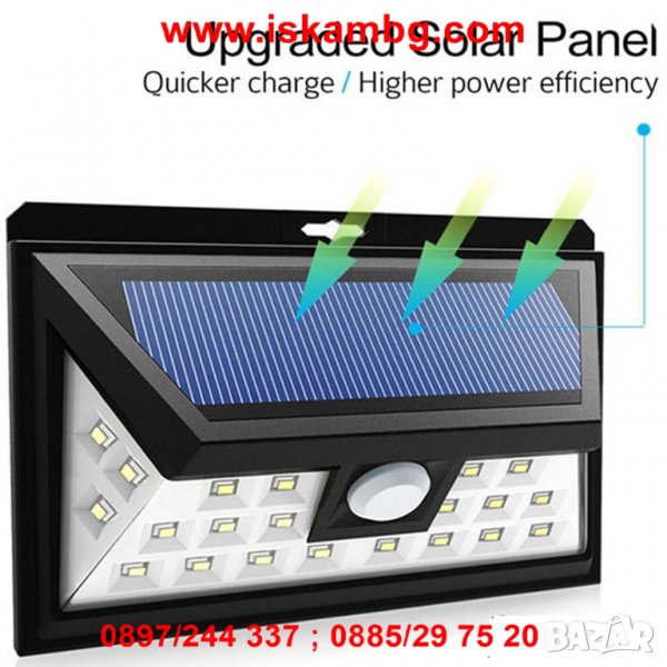 Моделът разполага с 40 LED диода, осветяващи с ярката си бяла светлина, превръщайки нощта в ден. Включеният сензор за движение улеснява употребата на лампата, а също така пести и енергия. Вместо да се притеснявате, че ще я забравите пусната, тя се включва при нужда и се изключва сама.