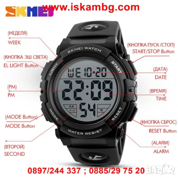 Спортен мъжки часовник, удароустойчив, водоустойчив