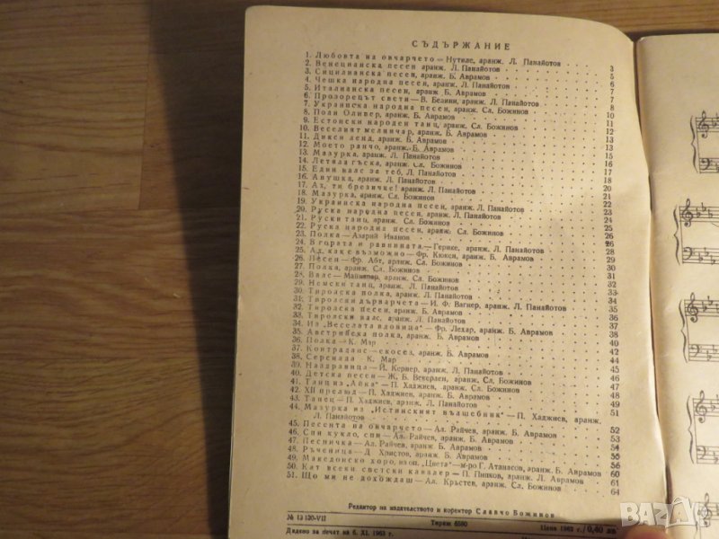 Стара колекция - Леки пиеси за акордеон свитък 1 - издание 1963 година - обработени и нотирани песн