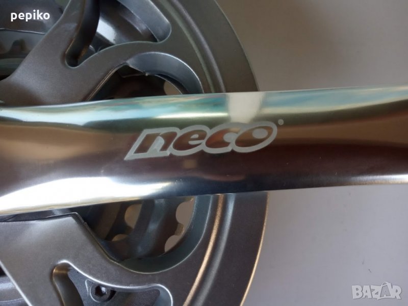 Комплект НОВИ алуминиеви курбели NECO,алуминиеви курбели NECO с алуминиево рамо 170мм.за оси на квадрат,с три плочи 48-38-28,с пластмасов предпазител на плочите,курбелите са на ромб,подходящи за МТВ велосипеди,много добри.