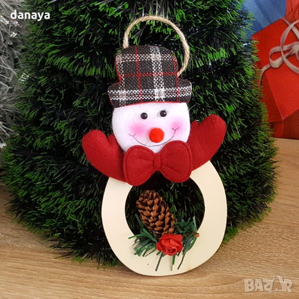 Коледна украса за окачване еленче или снежен човек. Изработени от текстилни материали, дърво, PVC, хартия и шишарка. Коледните фигури могат да се закачат на стена, коледна елха или на друго място. Предлага се в 2 варианта - еленче и снежен човек