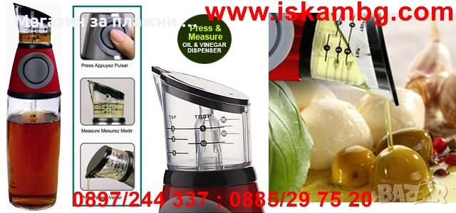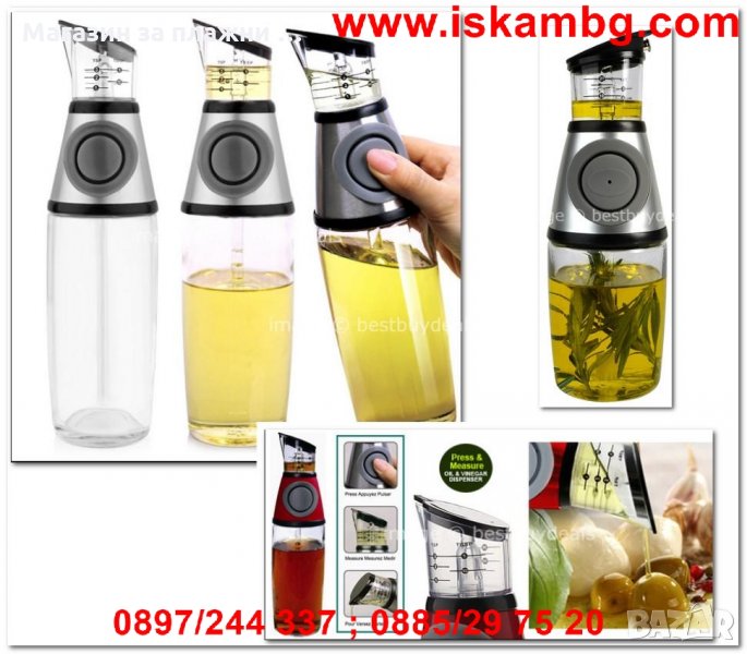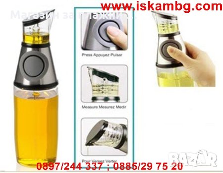 С този диспенсър ще можеш да използваш винаги с точност желаното количество олио или оцет при приготвянето на салата или каквото и да е ястие.