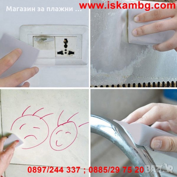 Универсална гъба за почистване на всички гладки повърхности, БЕЗ химически агенти, САМО с вода. Порестата структура на Нано гъбата почиства практически всичко, дори проблемните петна.