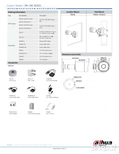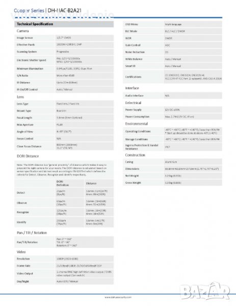 DAHUA DH-HAC-B2A21 2MPx DWDR AGC 4 in 1 HDCVI, AHD, HDTVI, CVBS Aluminium Construction Casing IP67 Waterproof & Vandal Resistance 4KV Lightning & Ingress Protection -40°С~+60°С