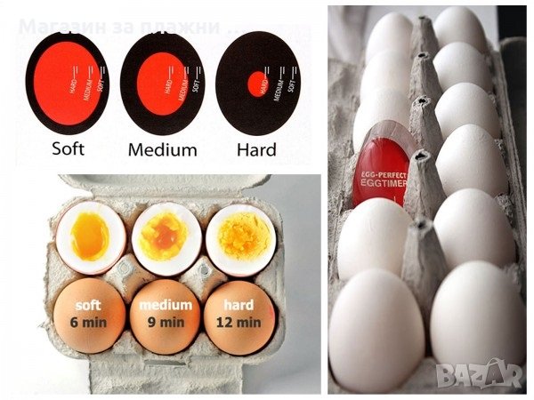 Когато бялата част започне да запълва повърхността на таймера, ще знаете с точност, посредством индикаторните ленти, каква точно е степента на свареност. Рохко, средно или твърдо сварено е яйцето.