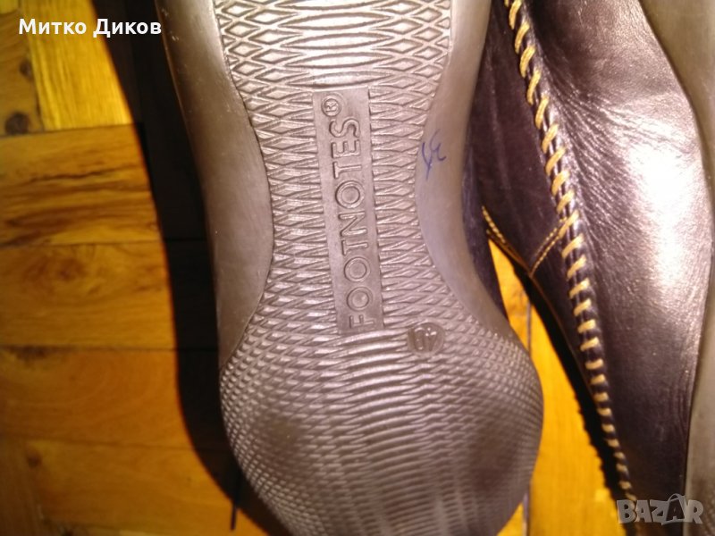 обувките са като нови видно от фотосите-един път са обувани -жена ми носи №40 както и те са по етикет -но реално са №39-стелката е 25см и са и малко тесни-затова се продават-маркови Footnotes Shoes -естествена кожа-напишете в Гугле и ще видите цени от 80 до 180евро на подобни модели-изпращам по еконт с отстъпка