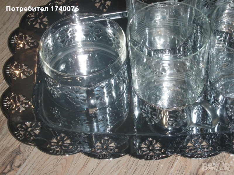 Поднос с 6 бр подстакани и захарница → Обява 26852863