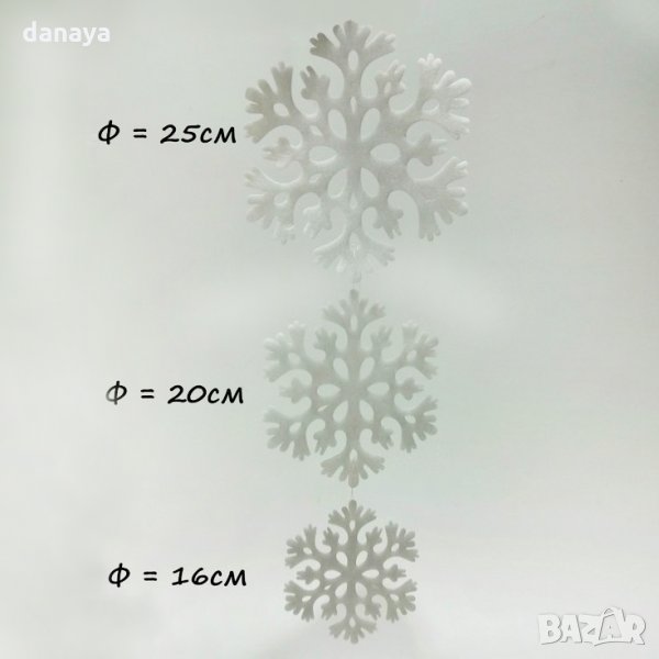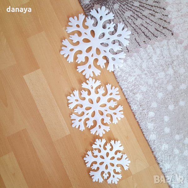Висяща коледна украса снежинки от латексова пяна за окачване. Стоят много ефектно, когато са закачени. Комплектът включва 3 броя снежинки в различни размери и аксесоари за закачане.