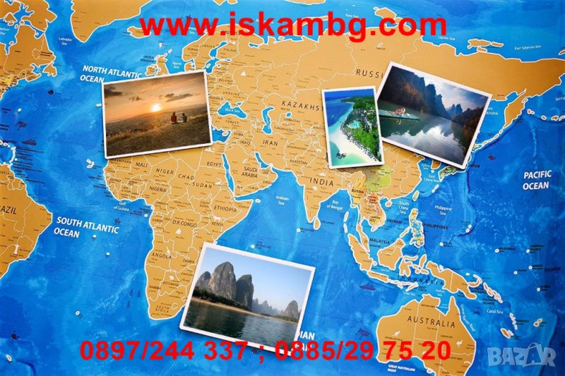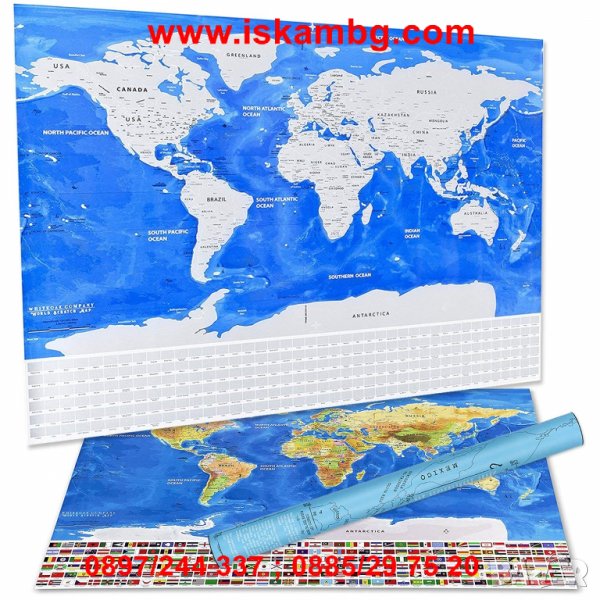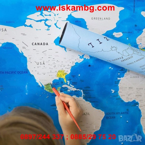 Скреч картата е покрита със слой сребристо скреч фолио, което след като изтриете, разкрива в червен цвят държавите в света, които сте посетили. Използвайте маркера, включен в комплекта, за да отбележите на картата плановете си за бъдещи пътувания или да запишете впечатленията си от изминали такива.