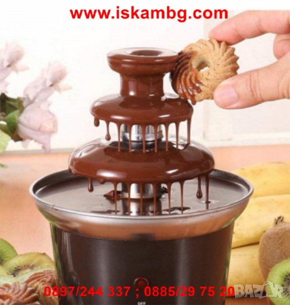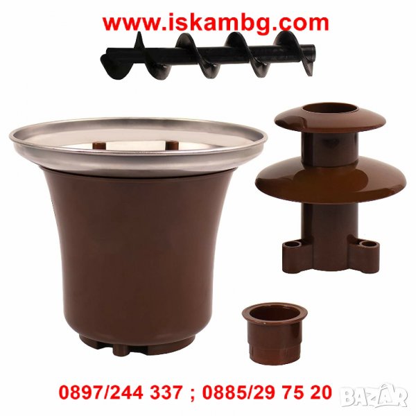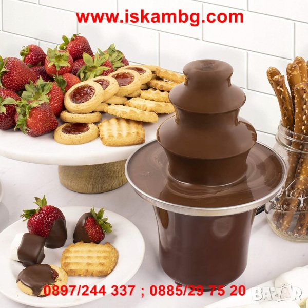 Шоколадът се изкачва по кулата и плавно пада по всеки ред на фонтана. Идеален за плодове, соленки, бонбони и всякакви други лакомства които харесвате. Подходящ за черен, бял и млечен шоколад.
