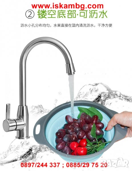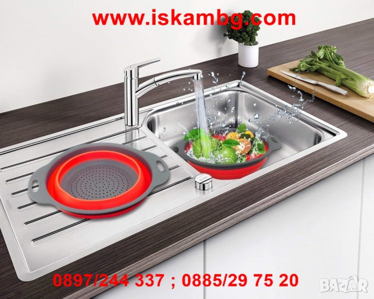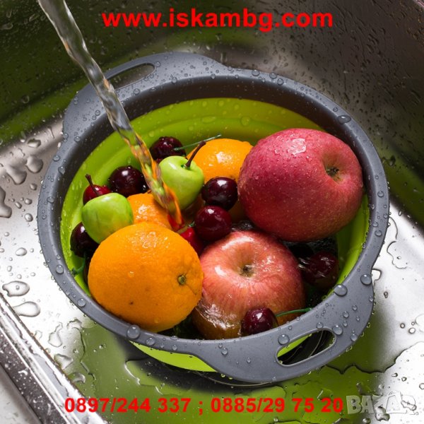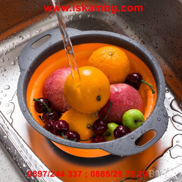 Точно това ще постигнете със сгъваемият сликонов гевгир (цедка). В зависимост от количеството на продуктите, които искате да измиете, използвайте уреда в сгънато или разгънато положение. А след тяхното изцеждане, те спокойно могат да останат в купата.