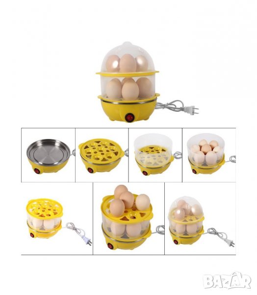 Яйцеварката е изработена в стилен дизайн. Има прозрачен капак. Корпусът и е в жълто. Стойките за яйца позволяват различно количество за варене.