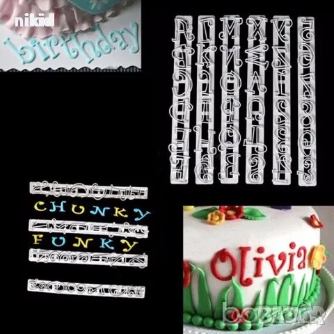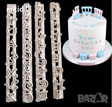 латиница Главни букви азбука и числа цифри резци на 6 релси шаблон пластмасови за украса торта пита → Обява 26858830