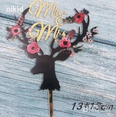Mr Mrs елен с цветя златен твърд Акрил топер за торта украса, снимка 1 - Други - 26859356 Mr Mrs елен с цветя златен твърд Акрил топер за торта украса, снимка 2 - Други - 26859356 1/2