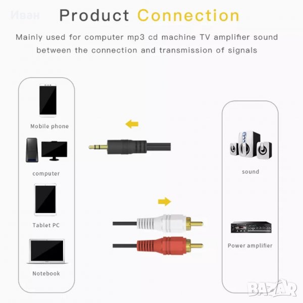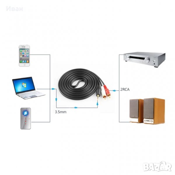 Цена за 1 брой кабел с дължина 1 метър 3,5 мм жак / 2 броя чинчове - 6.70 лв.