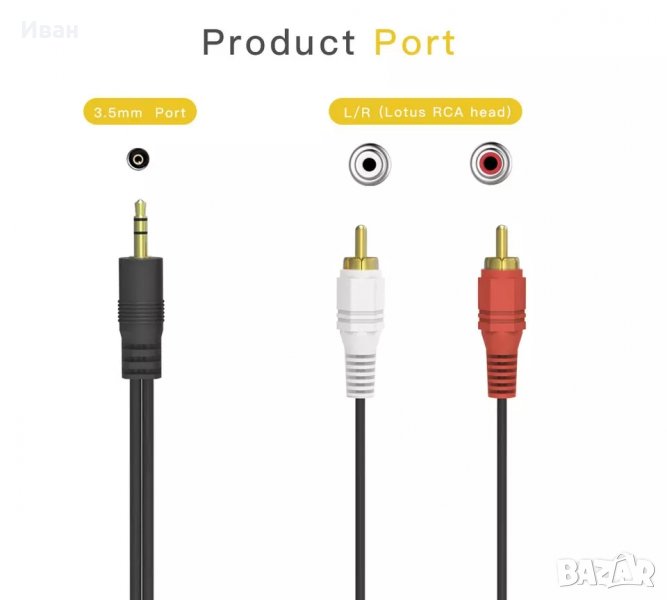 Продавам и чисто нови кабели с дължина 1 метър с 3.5 мм стерео жак в единия край и 2 чинча ( червен и бял) в другия край.