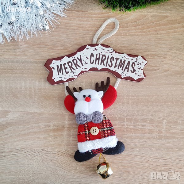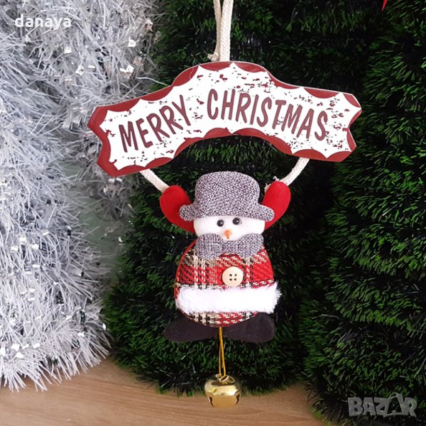 Коледна висяща фигура с табелка Merry Christmas и звънче → Обява 26861644