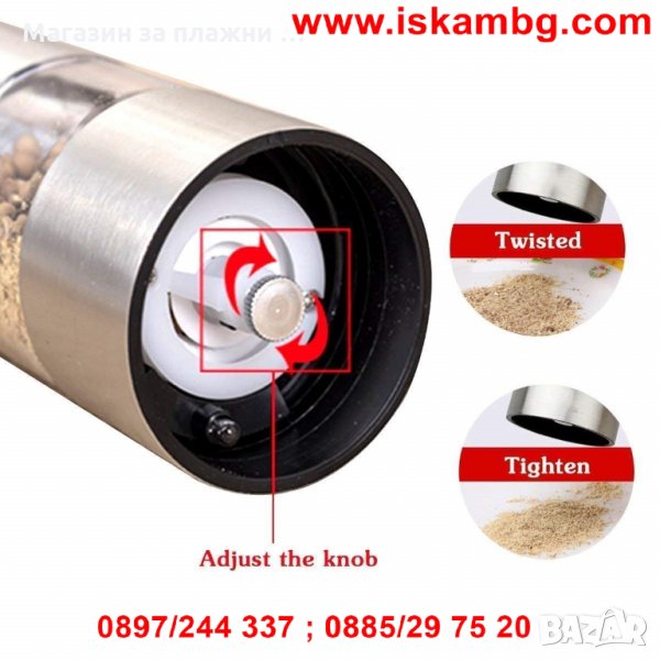 Специално LED осветление на дъното на мелничката улеснява работата и помага да сложите толкова количество подправки, колкото пожелаете. Мелничката премахва напълно неприятната ситуация, когато сте сложили прекомерно количество и не можете да изядете порцията си.