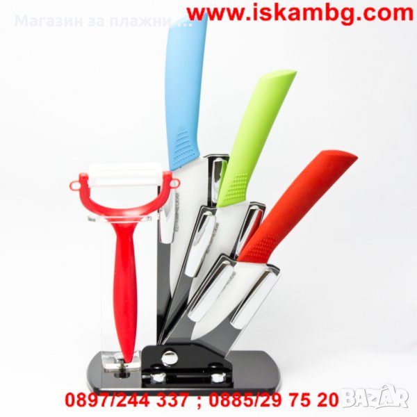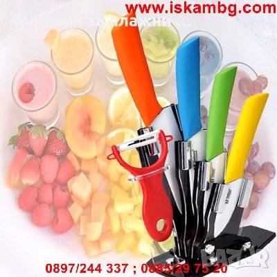 Комплекта включва 4бр. висококачествени керамични кухненски ножове, керамична белачка и черна поставка. С тези ножове си осигурявате бърза и лесна работа, както и почистване.