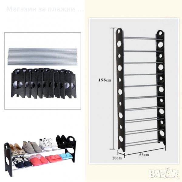 Подредете удобно вашите обувки с помощта на този органайзер. Моделът е изключително стилен и практичен, давайки лесен достъп до обувките, но без те да заемат целия под в антрето. Подходящ избор е и за различни заведения, където се изисква да се събуват обувките (спортни зали и т.н.). А най-хубавото е, че сами може да определите колко рафта ще използвате, благодарение на сглобяемата конструкция. Може да направите няколко по-малки стелажа, да ги ползвате в различни стаи и т.н. Органайзерът за обувки побира общо до 30 чифта обувки.