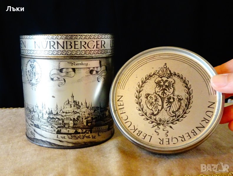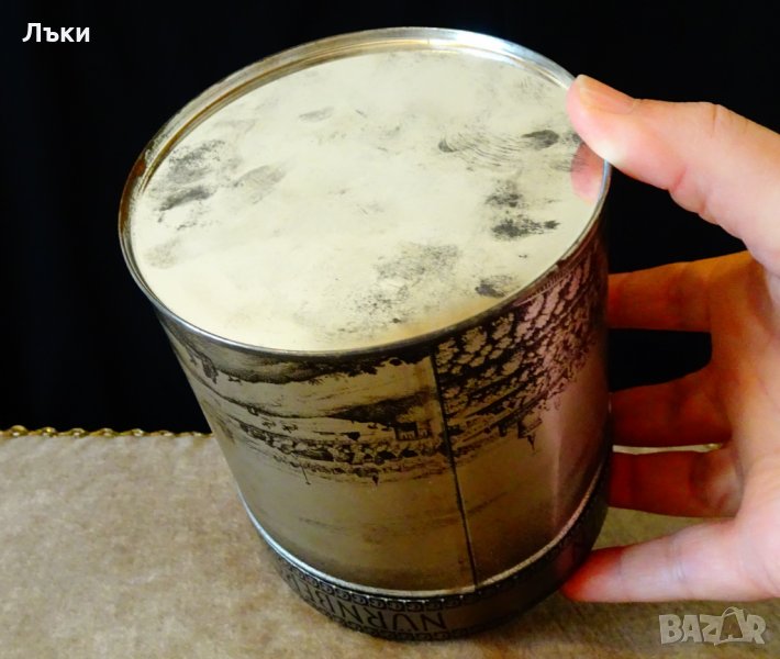 Немска метална кутия за подправки,чай,кафе с рисувани пейзажи от Нюрнберг,Бавария.Височина 12.5 см.,диаметър 11 см.,тегло 125 гр.