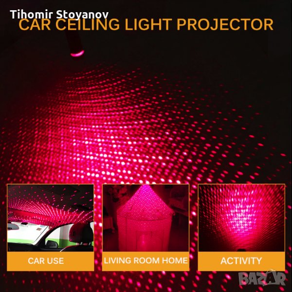 светлинa на покрива на колата, лазерна проекция на червено звездно небе е