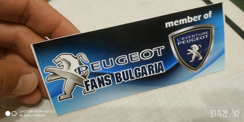 Стикери на Пежо Фен Клуб България.Нови.Трите бели за вътрешно поставяне на стъклата.Синия за външно поставяне.Всичките са с размер 15 на 6 см.