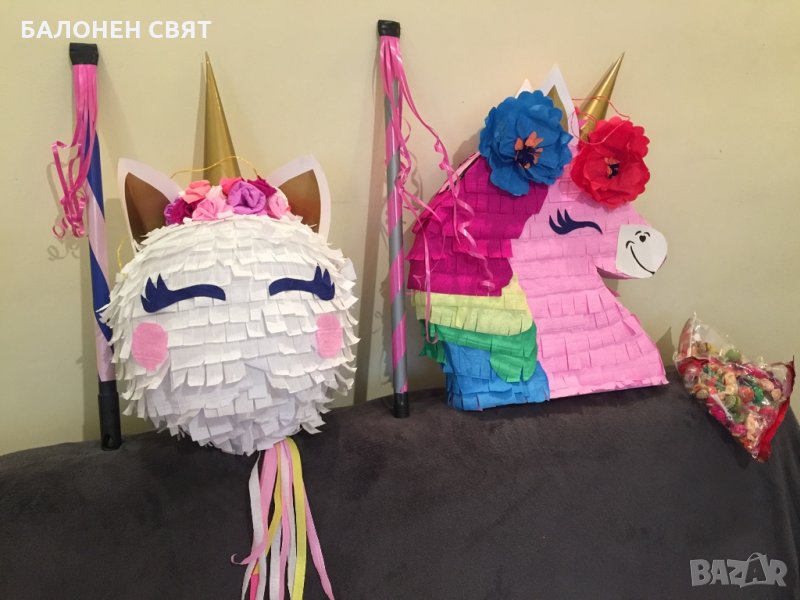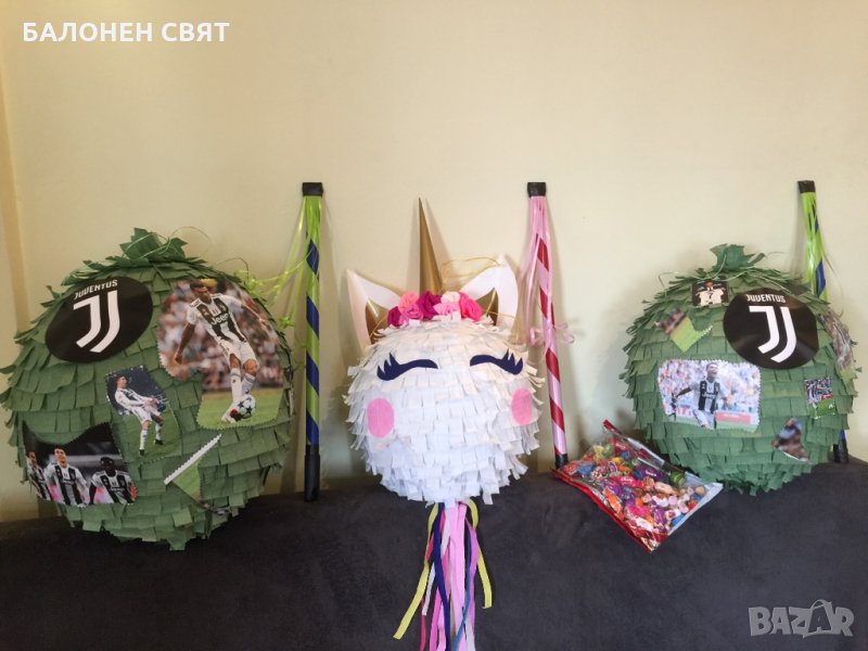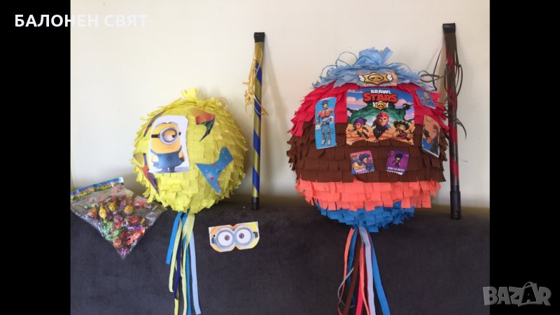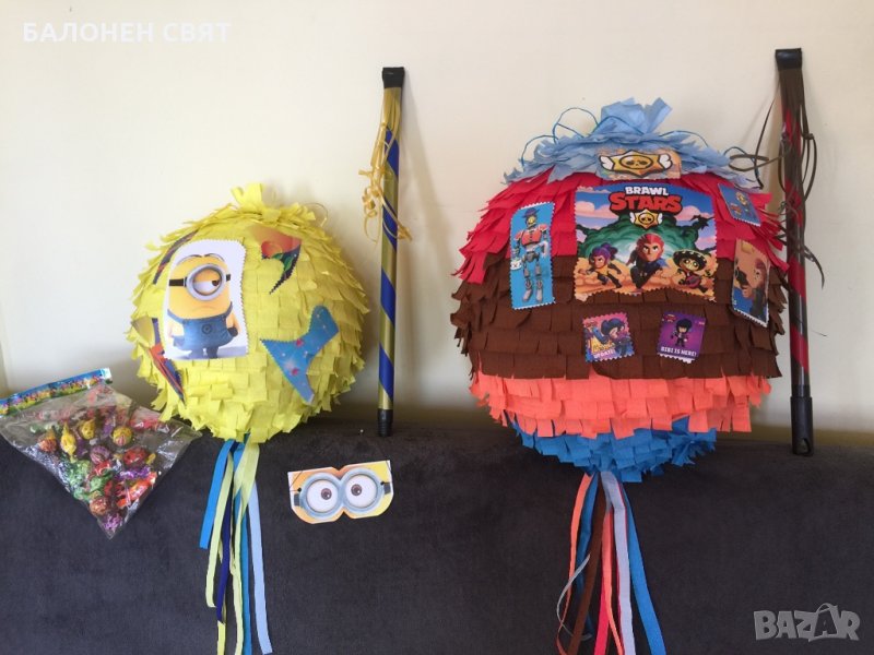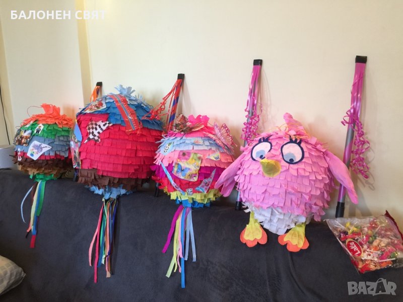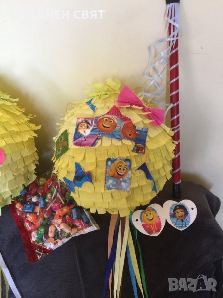 - Комплект Лакомства за напълване на пинятата 4.99 лв. (включва подходящи за деца шарени меки фруктови бонбони 30 бр, плюс големи фруктови близалки 10 бр)