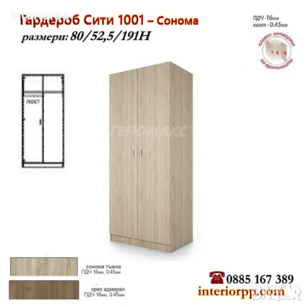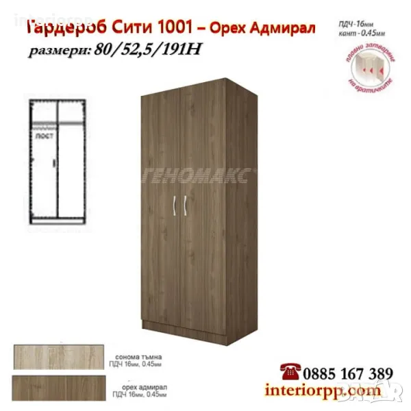 Гардероб Сити 1001 е с две врата с плавно затваряне.