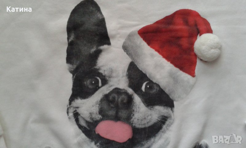 Страхотен суитшърт в новогодишен мотив,декориран с помпон и сребрист брокатен надпис.Размер на етикета 170+,14 год.Отговаря на 152-158 см.Обличана 2 пъти.Като нова.