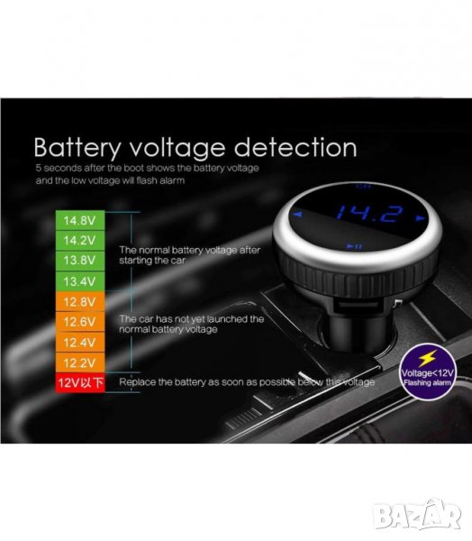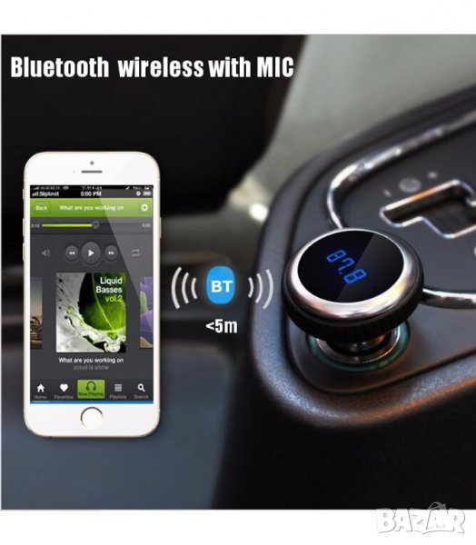 Bluetooth трансмитер с хендсфри и 2бр. USB - 1бр.
