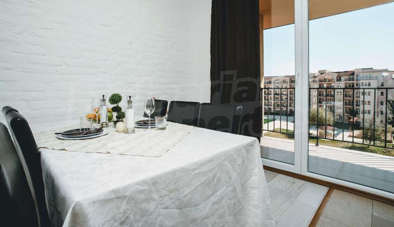 При строителството на комплекса са използвани само висококачествени материали. Апартаментите са завършени до ключ, като разполагат с EPS 5 cm външна изолация, 5-камерна ПВЦ дограма, входна врата масив от МДФ, вътрешни врати от МДФ; стени боядисани с латекс, подове с ламиниран паркет. Кухнята е с монтирани кухненски шкафове, фурна / микровълнова печка; 2 електрически котлона, хладилник и абсорбатор, мивка. Баните са с вани, кран за топла и студена вода, тоалетна с казанче, мивка с коляно и смесител за топла и студена вода, осветление, монтиран и свързан - един електрически бойлер за топла вода, водомер. Има инсталирани климатици. Към апартамента има инсталации за кабелна телевизия, безжичен интернет, СОТ и пожароизвестителна система.