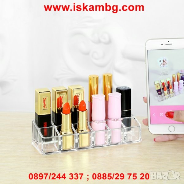 Този пластмасов органайзер, наподобява стълбичка и така червилата, които са най-назад са по-повдигнати и не се скриват. Това ползволява тяхното често използване и не остават забравени в ъгъла. Органайзерът има 12 малки отделения, като това спира възможността червилата да падат, да се търкалят и дори да се нараняват опаковките. Освен функционалността на органайзера, той е също и много елегантен. Може да бъде поставен върху тоалетката, за да декорирате.