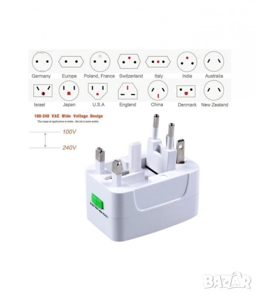 Универсален туристически адаптор с три различни типа на включване към електрическата мрежа: