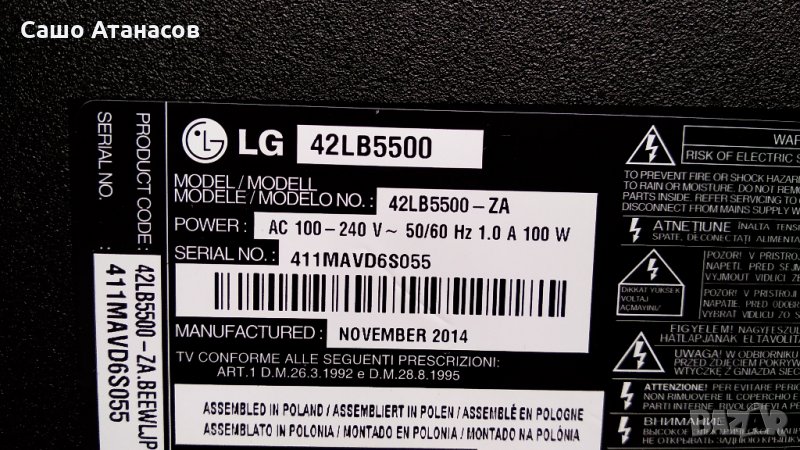 LG 42LB5500 със счупена матрица ,EAX65423701(2.1) ,EAX65361505(1.0) ,6870C-0480A ,LC420DUE (FG)(A6)