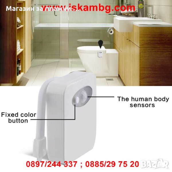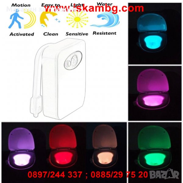 Нежната светлина в желания от вас цвят се активира само когато усети, че се приближавате и когато е достатъчно тъмно. Веднъж активирана, тя започва да свети по приятен начин, който успокоява. Забравете за разбуждането и заслепяването от силната светлина в тоалетната.