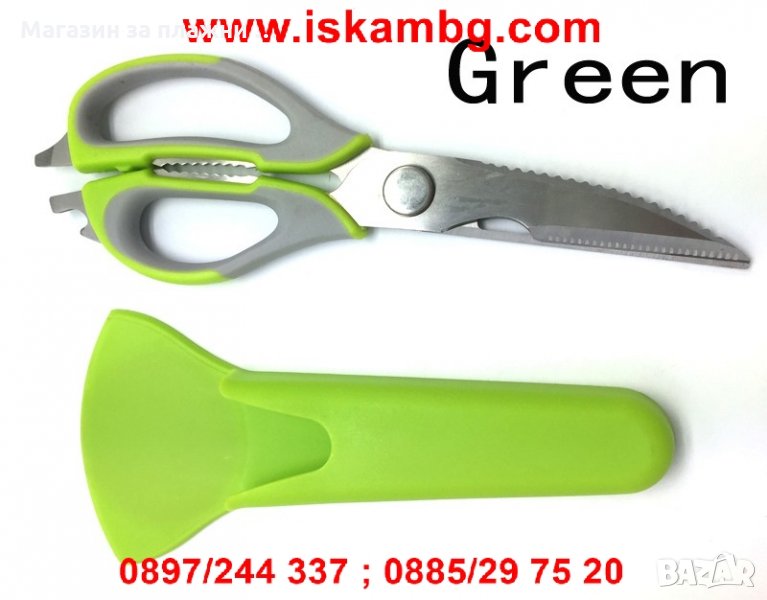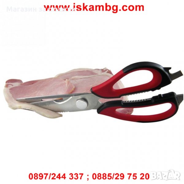 С ножицата може лесно да режете пиле и кости, почиствате риба, отваряте бутилки, белите зеленчуци, трошите ядки и отвавряте черупки! Дръжките са и гумирани за по-удобно използване. В комплекта има удобен за съхранение пластмасов калъф с магнит. Ножицата може да се разглоби само с 1 движение, много лесна за почистване. Забравете за всички излишн кухненски уреди с удобната и фукнционална ножица Mighty Shears!